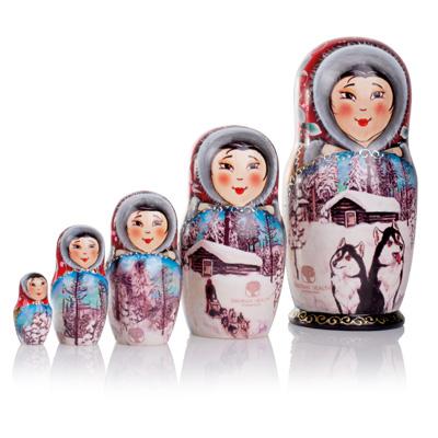 Handgemachte Matrjoschka-Puppen spiegeln den Alltag und die Farbepracht des einzigartigen Ortes der Welt wieder- Sibirien.
